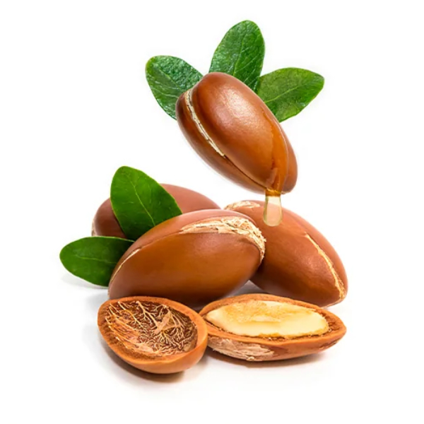 Аргановое масло (Argania Spinosa Kernel Oil) активно используется в уходе за волосами, особенно сухими и поврежденными. Оно способно заменять кожное сало, так, что благодаря этому свойству сухие и ломкие волосы приобретают естественную мягкость и эластичность, становятся более «живыми» и шелковистыми, при этом абсолютно не утяжеляются. Масло арганы, будучи естественным усилителем блеска волос без эффекта жирности, оказывает также питающее и оздоравливающее действие на кожу головы. Масло содержит витамин Е, который является сильным антиоксидантом. Он защищает волосы от свободных радикалов и сохраняет здоровье волос, уменьшая негативное воздействие окружающей среды