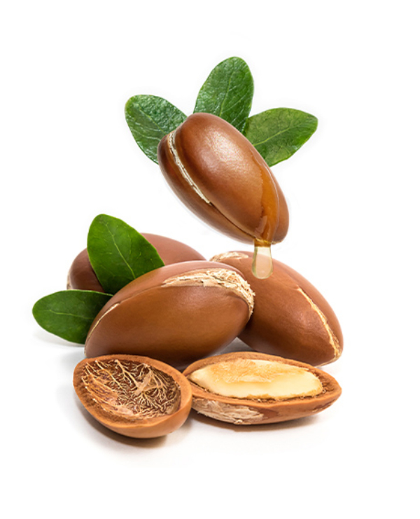 Аргановое масло (Argania Spinosa Kernel Oil) активно используется в уходе за волосами, особенно сухими и поврежденными. Оно способно заменять кожное сало, так, что благодаря этому свойству сухие и ломкие волосы приобретают естественную мягкость и эластичность, становятся более «живыми» и шелковистыми, при этом абсолютно не утяжеляются. Масло арганы, будучи естественным усилителем блеска волос без эффекта жирности, оказывает также питающее и оздоравливающее действие на кожу головы. Масло содержит витамин Е, который является сильным антиоксидантом. Он защищает волосы от свободных радикалов и сохраняет здоровье волос, уменьшая негативное воздействие окружающей среды